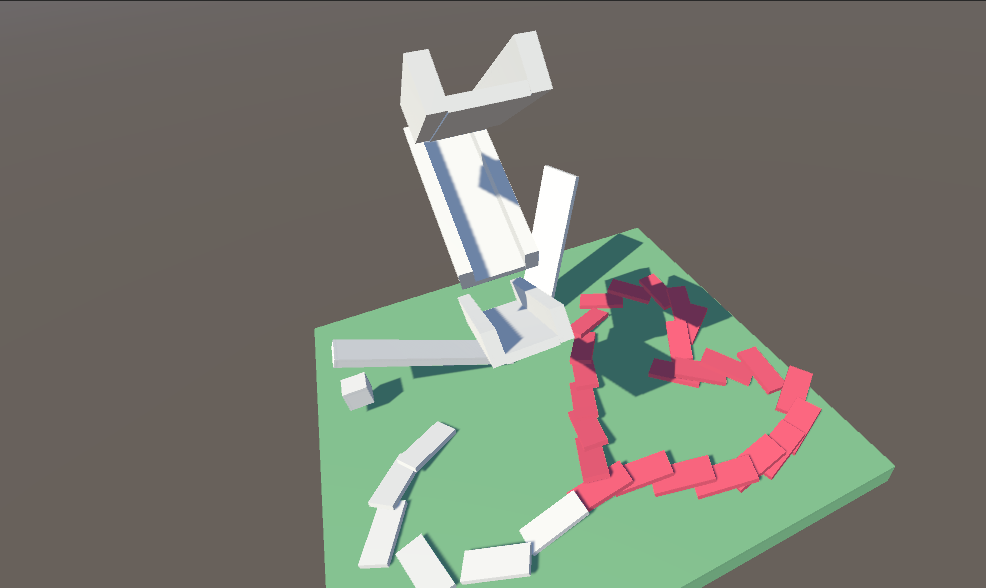 This is a simulation for Rude Goldberg. It consists of ramps, a seesaw, and dominoes. Check out the result image of dominoes!