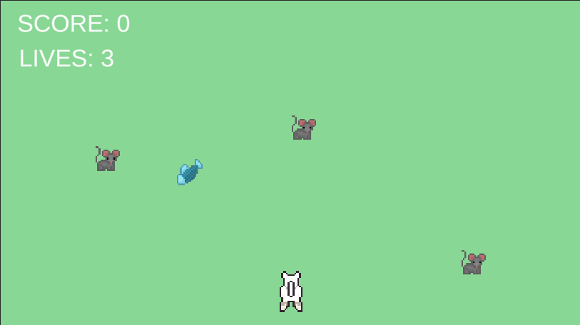 This is a shmup game. You are a cat! Try to shoot mice, by pressing space bar. Eat fish for points!